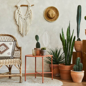 - Bedrooms highlight tactile layering—think cotton throws, woven headboards, and ambient lighting.